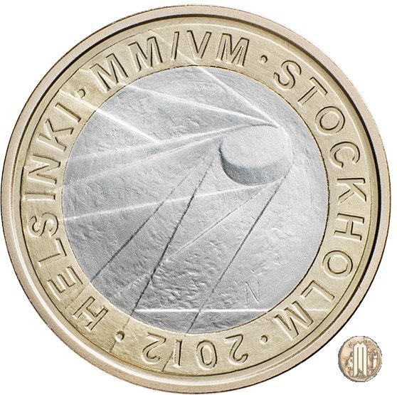 5 Euro 2012 Campionato del mondo Hockey Stoccolma Dritto: Giocatore di Hockey • Sul perimetro: "SUOMI" "FINLAND" "5EURO" Verso: Al centro disco di hockey. Sul perimetro: "HELSINKI• MMIVM • STOCKHOLM • 2012 • " | |
