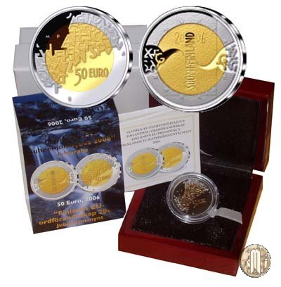 50 Euro 2006 Presidenza Unione Europea Dritto: Rappresentazione di un Tavolo con Iscrizione: SUOMI-FINLAND 2006. Verso: Palloncini pieni di composizioni di lettere. | |