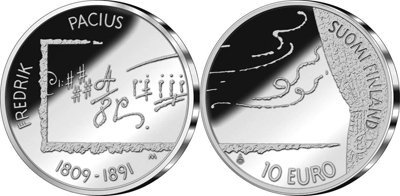 10 Euro 2009 Fredrik Pacius Dritto: Il dritto ed il rovescio della moneta si completano l'un l'altra, formando una stilizzata notazione musicale che si muove verso un palco. Fredrik Pacius (1809-1891) di origine Tedesca visse quasi tutta la sua vita in Finlandia, ove insegno musica all'Università di Helsinki e fu definito "Padre della Musica Finlandese". Verso: Il dritto ed il rovescio della moneta si completano l'un l'altra, formando una stilizzata notazione musicale che si muove verso un palco. Iscrizioni: SUOMI FINLAND 10 EURO ![]() ![]() | |