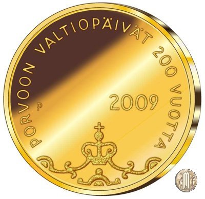 100 Euro 2009 200° Anniv. Dieta di Porvoo Dritto: Corona Reale Legenda: PORVOON VALTIOPAIVAT 200 VUOTTA - 2009 Nascita dell'Indipendenza della Finlandia. Nella città di Porvoo nel 1809 l'Imperatore russo Alessandro I annun ciò che la Finlandia era stata elevata a stato di nazione tra le nazioni. Verso: Immagine simbolica di un monte Legenda: SUOMI FINLAND 100 EURO | |