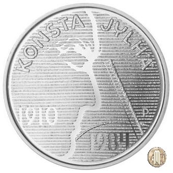 10 Euro 2010 Konsta Jylhä ja kansanmusiikki Dritto: Profilo dell'artista stilizzato mentre suona un violino. Sfondo: linee parallele orizzontali. In circolo esterno, legenda: KONSTA JULHÄ. In basso, su righe sfasate, legenda: 1910 1984. A destra in basso: sigla autore. Verso: A destra e sinistra: chiavi di violino. Sfondo: linee parallele orizzontali con dodici punti. In circolo esterno in alto: nome dello stato, anno di emissione. In alto al centro: simbolo della zecca. In basso a destra: valore facciale. | |