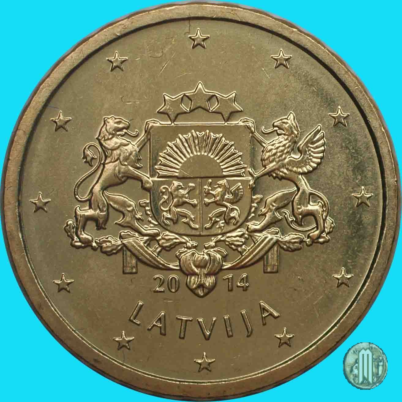 50 centesimi di Euro Dritto: Stemma grande della Repubblica della Lettonia, con anno di coniazione ed iscrizione "LATVIJA" sotto di esso. Sul perimetro esterno 12 stelle. Verso: Faccia comune | |