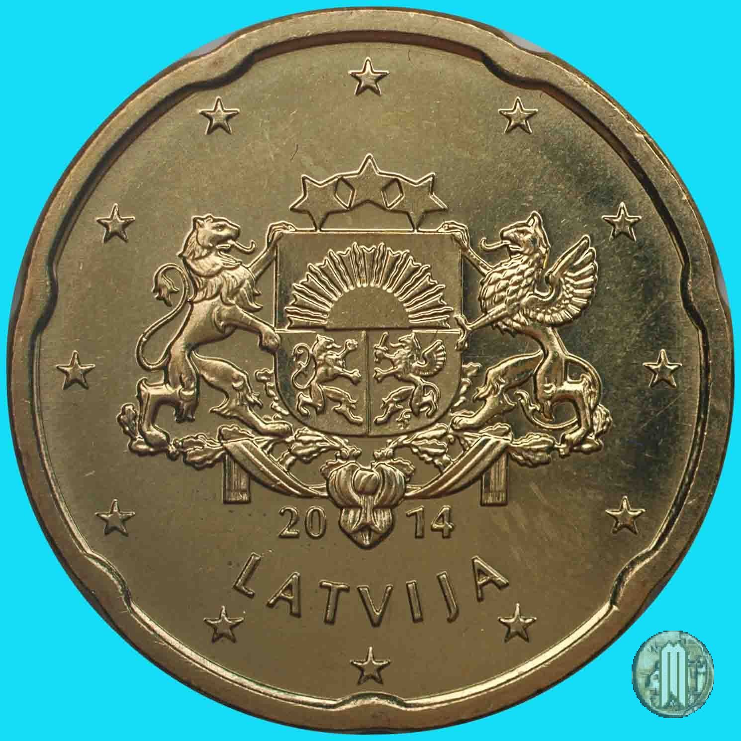 20 centesimi di Euro Dritto: Stemma grande della Repubblica della Lettonia, con anno di coniazione ed iscrizione "LATVIJA" sotto di esso. Sul perimetro esterno 12 stelle. Verso: Faccia comune | |