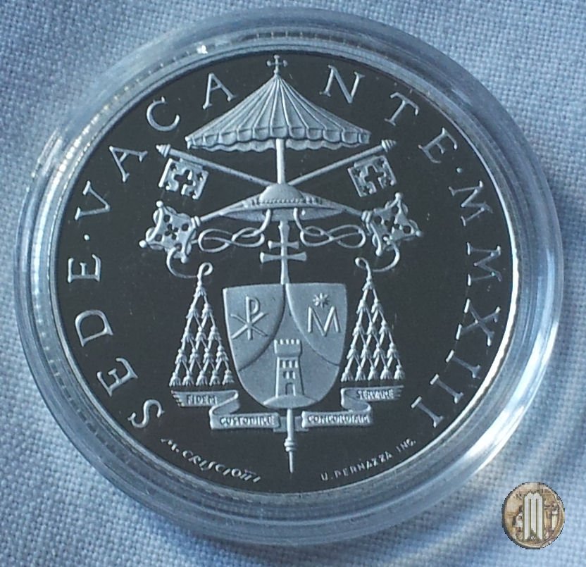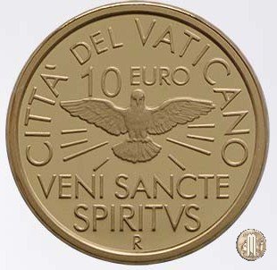 10 Euro 2013 Sede Vacante Dritto: Al centro lo stemma del Camerlengo sormontato dal simbolo della Camera Apostolica; nel giro, in basso, "SEDE VACANTE MMXIII". Verso: Al centro la Colomba dello Spirito Santo con in alto il valore "10 EURO" ed in basso la scritta "VENI SANCTE SPIRITVS" e il segno della Zecca "R"; nel "CITTA' DEL VATICANO". |