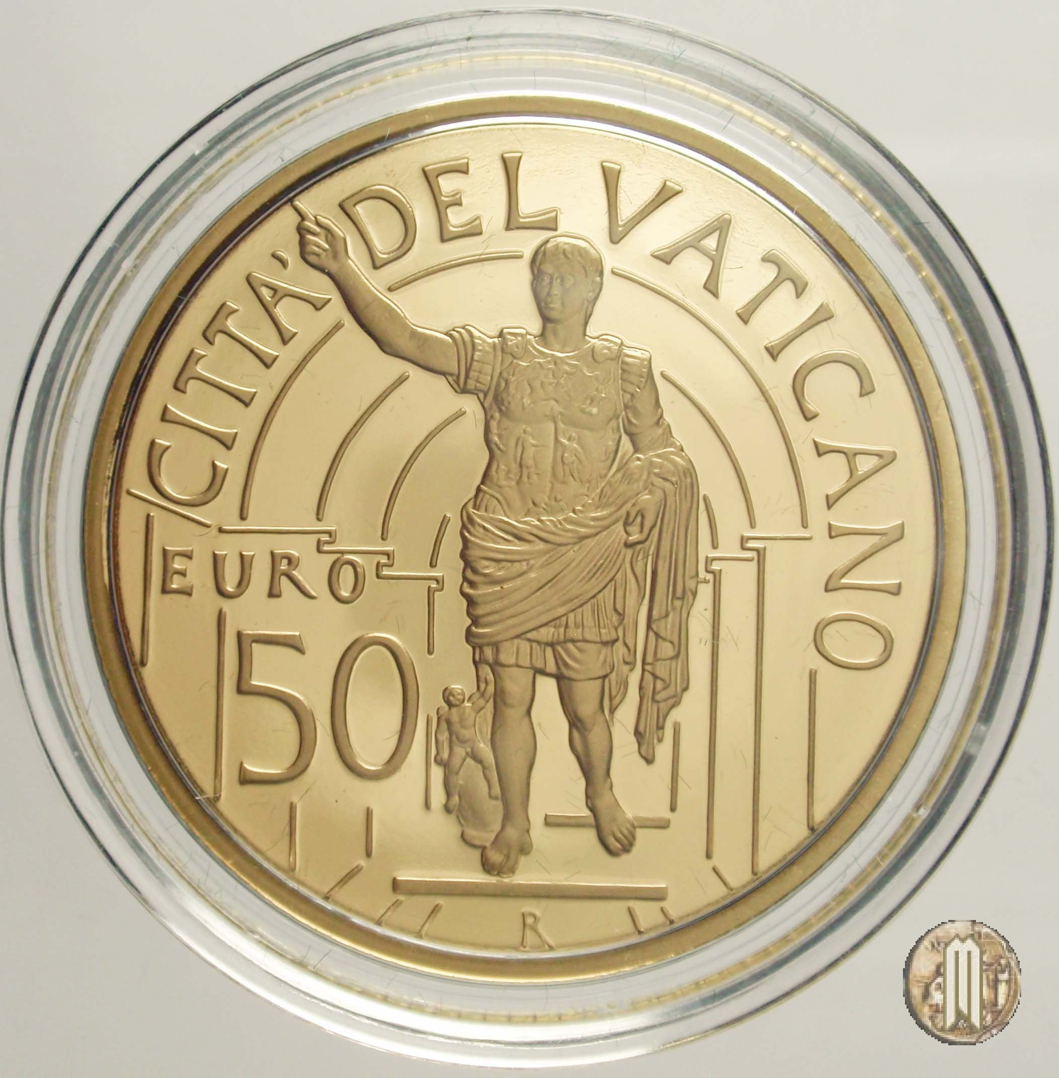 50 Euro 2010 Capolavori Scultura in Vaticano - Augusto di Prima Porta Dritto: BENEDICTVS XVI P.M.AN.VI-MMX / volto del Santo Padre rivolto a sinistra. Verso: CITTA' DEL VATICANO - EURO 20 / Augusto di Prima Porta o Augusto Ioricato (dalla Iorica che era la corazza in pelle dei legionari romani). Statua romana che ritrae l'imperatore Augusto. | |