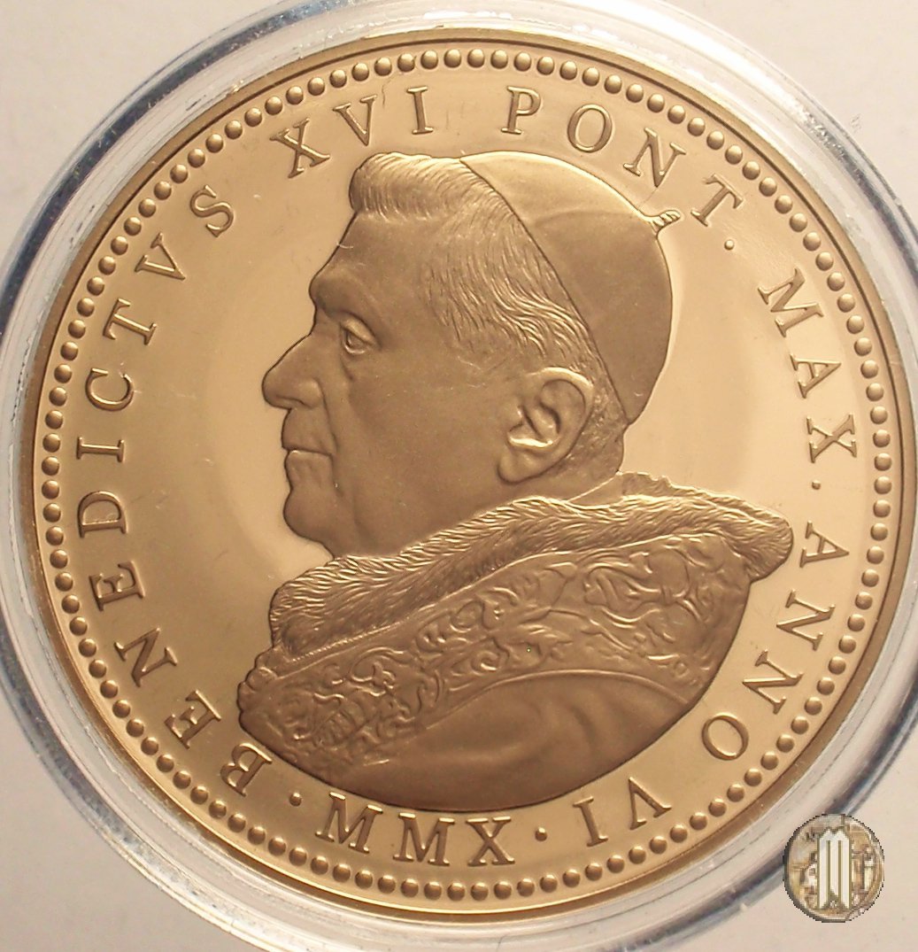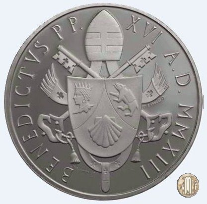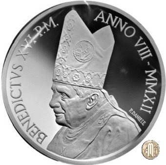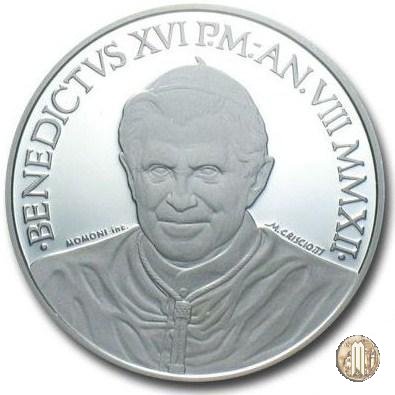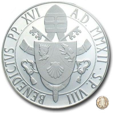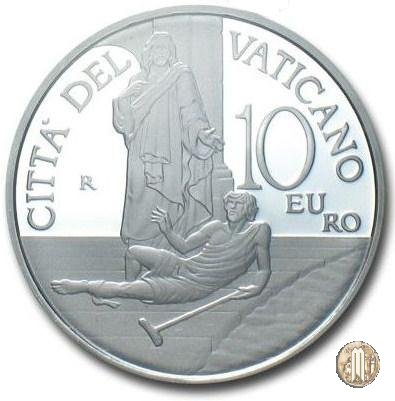 10 Euro 2012 XX Giornata Mondiale del Malato Dritto: Al centro busto di Papa Benedetto XVI; sulla sinistra il nome dell'incisore "MOMONI inc."; sulla destra il nome dello scultore "M. CRISCIOTTI"; nel giro la legenda ". BENEDICTVS XVI P.M. - AN. VIII MMXII •". Verso: Al centro rappresentazione della guarigione del paralitico avvenuta, ad opera di Gesú Cristo, sotto i portici della piscina Betzatà presso la porta delle Pecore a Gerusalemme (Gv 5, 2-18); sulla sinistra il segno della Zecca "R"; sulla destra il valore disposto su tre righe "10", "EU" e "RO"; nel giro la legenda "CITTA' DEL VATICANO". | |