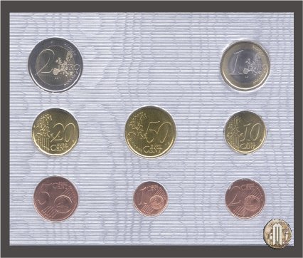 1 Euro Dritto: Al centro lo stemma del Cardinale Camerlengo e quello della Camera Apostolica (chiavi decussate sormontate da un padiglione. Intorno a questo," • SEDE • VACANTE • MMV •" e accanto il segno di Zecca "R". Sotto le firme dell'autore e dell'incisore, "D.LONGO" e "M.A.C.INC.". Intorno nella metà superiore le 12 stelle simbolo dell'UE, sotto "CITTA' DEL VATICANO". Verso: Faccia comune | |
