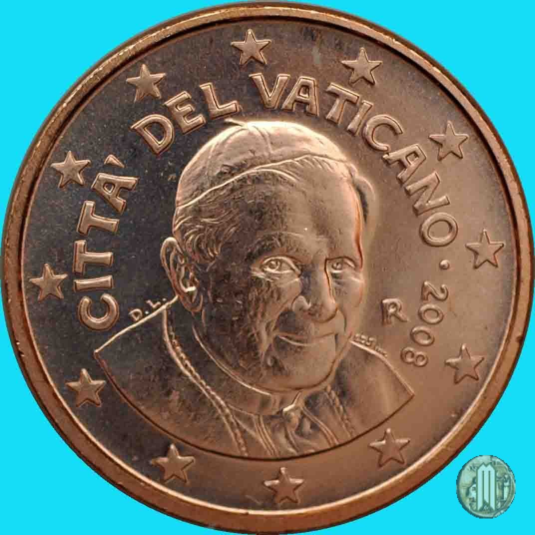 1 centesimo di Euro Dritto: Al centro il ritratto di Benedetto XVI rivolto a destra. Sopra le spalle le sigle dell'autore e dell'incisore "D.L." e "L.D.S.INC." e il segno di Zecca "R". Sopra il ritratto, ad arco, "CITTA' DEL VATICANO •" seguito dal millesimo. Intorno le 12 stelle simbolo dell'UE. Verso: Faccia comune | |