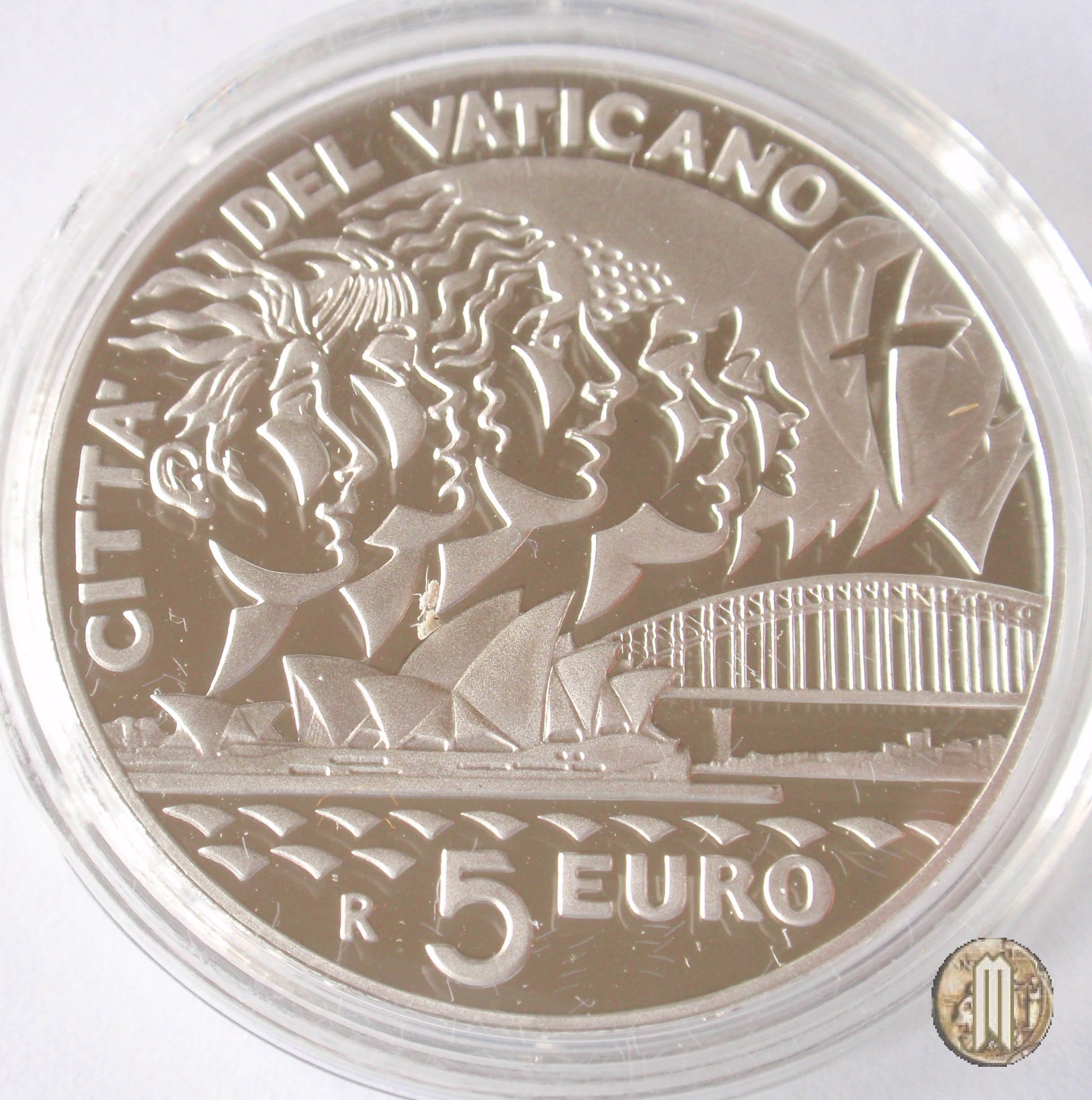 5 Euro 2008 Giornata Mondiale della Gioventú Dritto: Immagine di Papa Benedetto XVI + Iscrizioni: BENEDICTUS XVI PONT MAX ANNO IV-MMVIII Verso: 5 volti di giovani e Basilica Sydney + Iscrizioni: CITTA' DEL VATICANO - 5 EURO | |