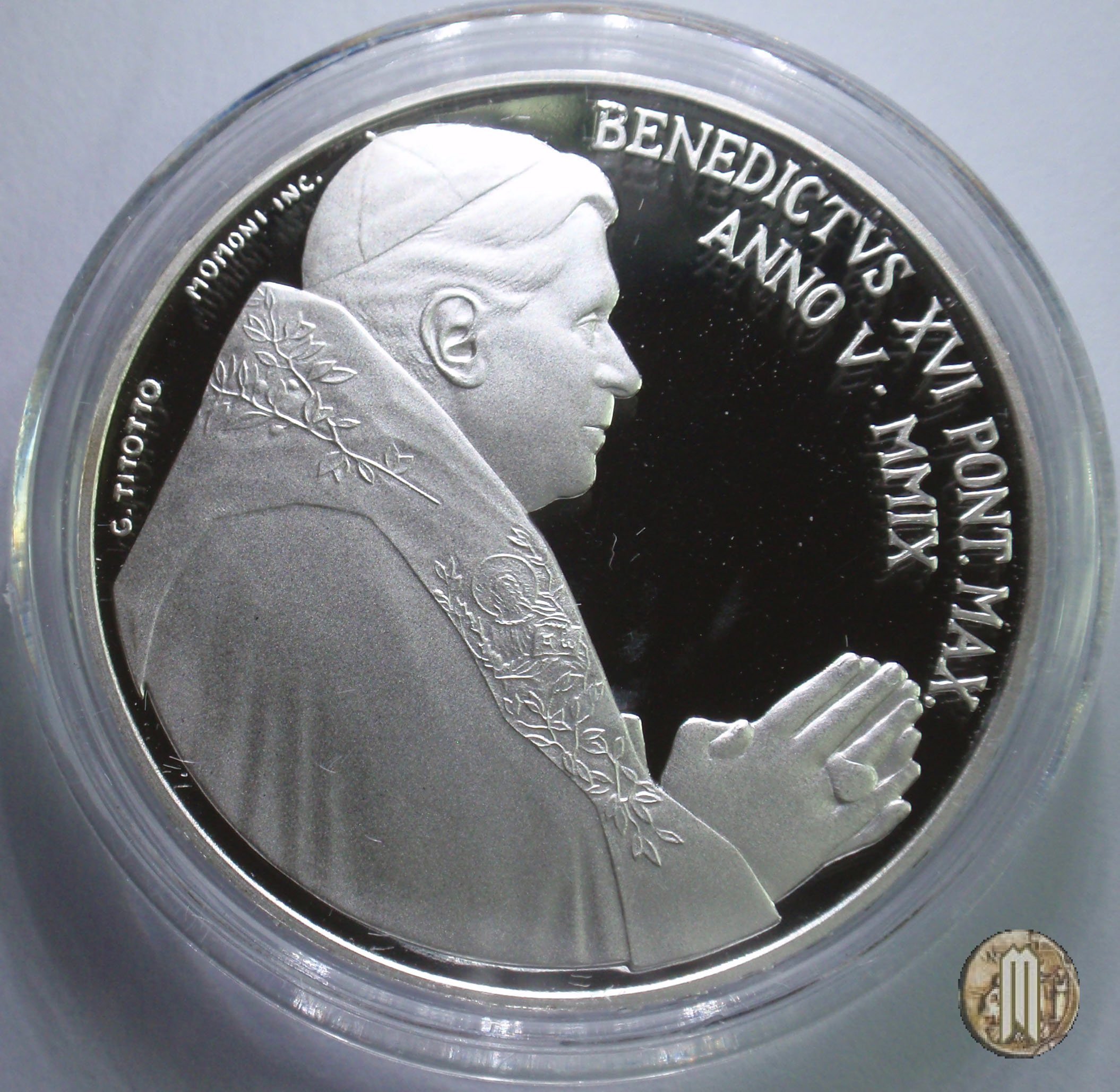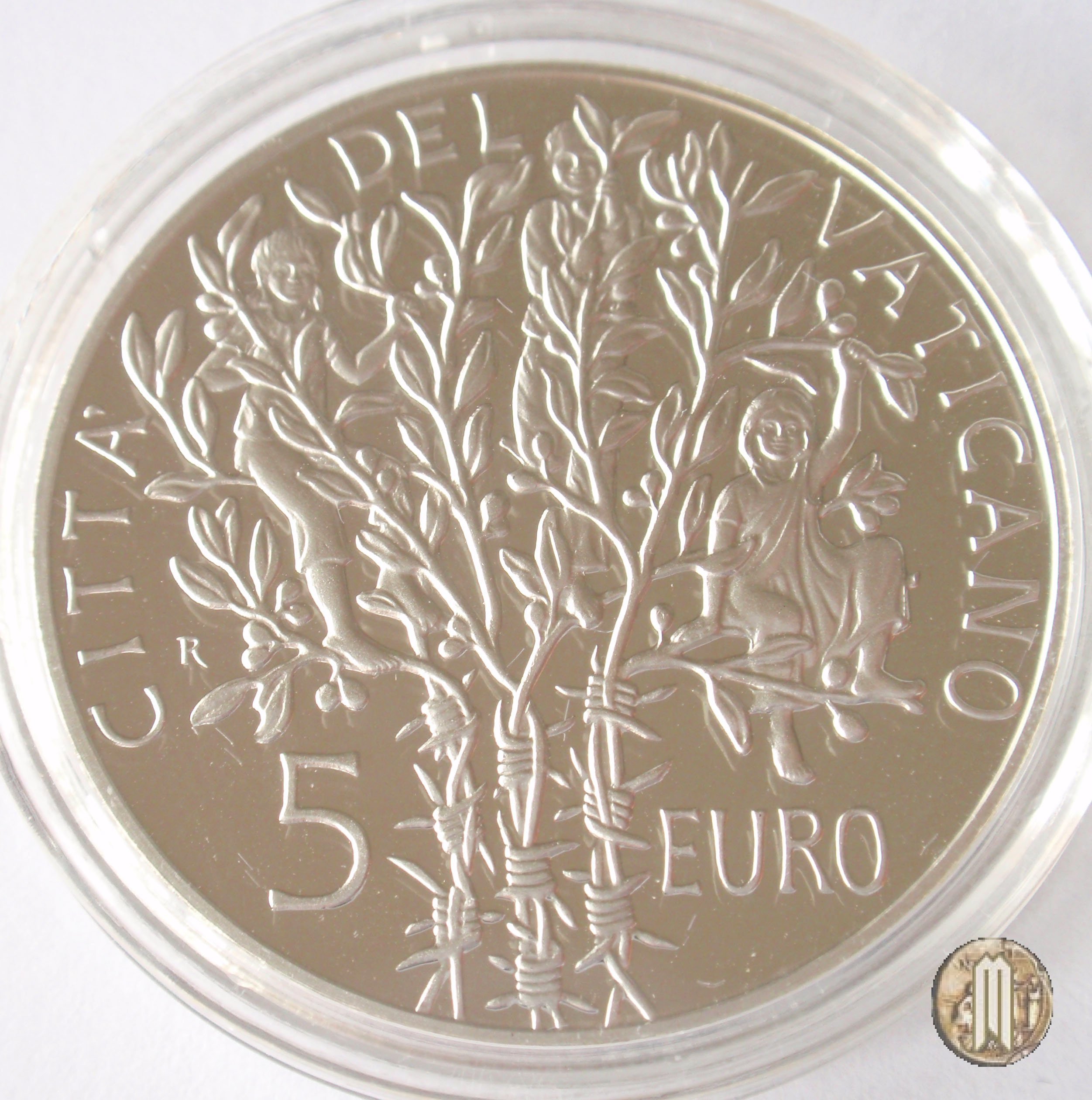 5 Euro 2009 Giornata Mondiale della Pace Dritto: BENEDICTVS XVI PONT.MAX. ANNO V _ MMIX Mezzo busto del Santo Padre rivolto a destra. Verso: CITTA' DEL VATICANO 5 EURO XLII Giornata Mondiale della Pace "Combattere la povertà, costruire la pace" | |
