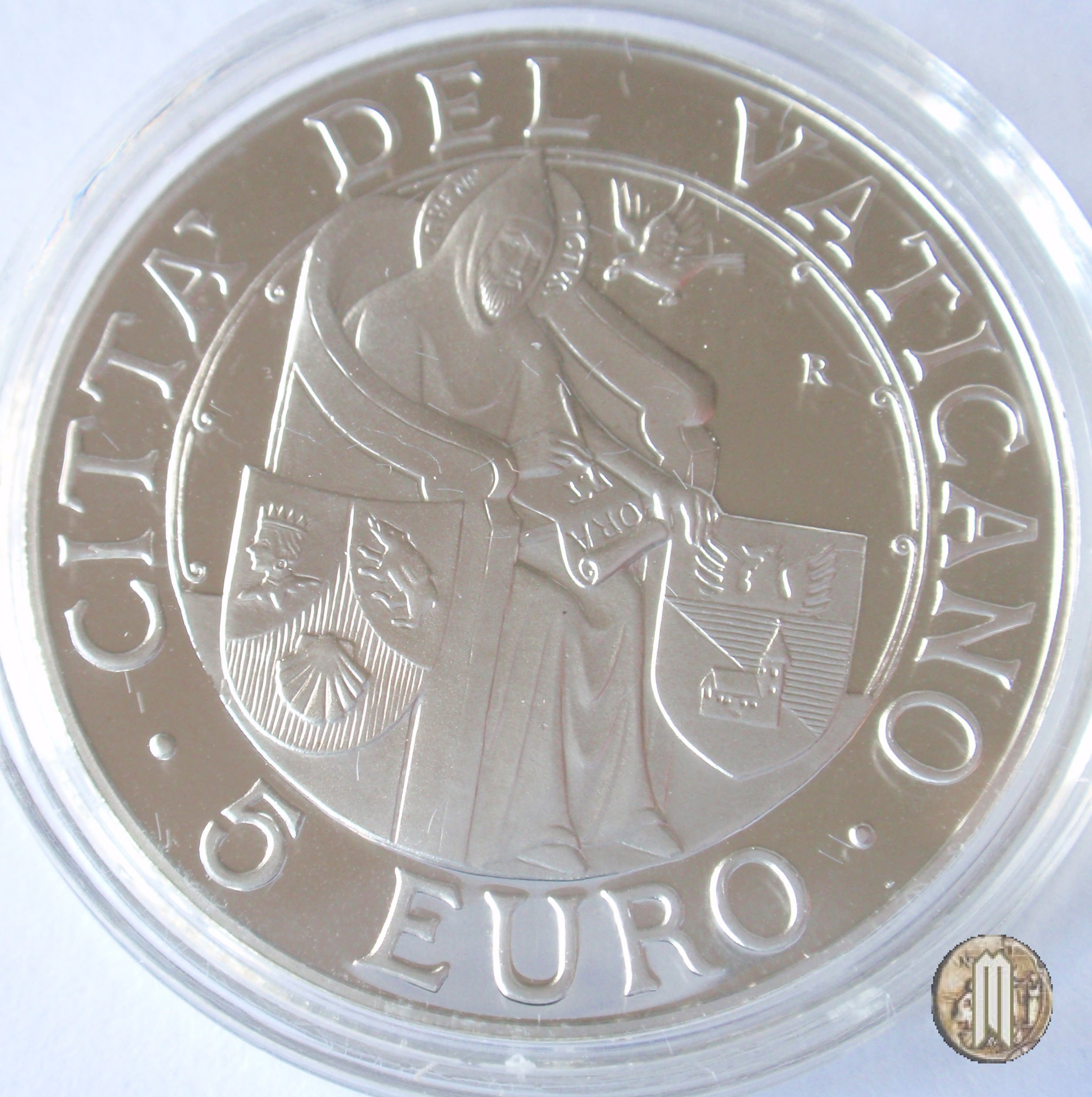 5 Euro 2006 Giornata Mondiale della Pace Dritto: Immagine del Papa Benedetto XVI +Iscrizioni: BENEDICTUS XVI P.M. ANNO II. MMVI Verso: San Benedetto e Stemmi Papali di Benedetto XV e Benedetto XVI +Iscrizioni: CITTA' DEL VATICANO - 5 EURO | |