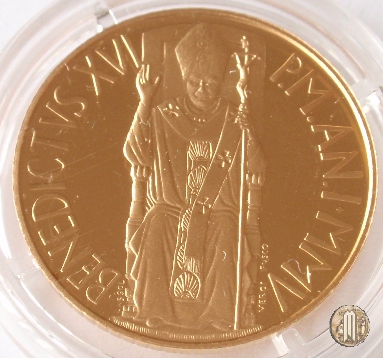 50 Euro 2008 Capolavori Scultura in Vaticano - La Pietà Dritto: Immagine di Papa Benedetto XVI +Iscrizioni: BENEDICTUS XVI P.M.-AN.IV-MMVIII Verso: La Pietà di Michelangelo + Iscrizioni: CITTA' DEL VATICANO - EURO 50 | |