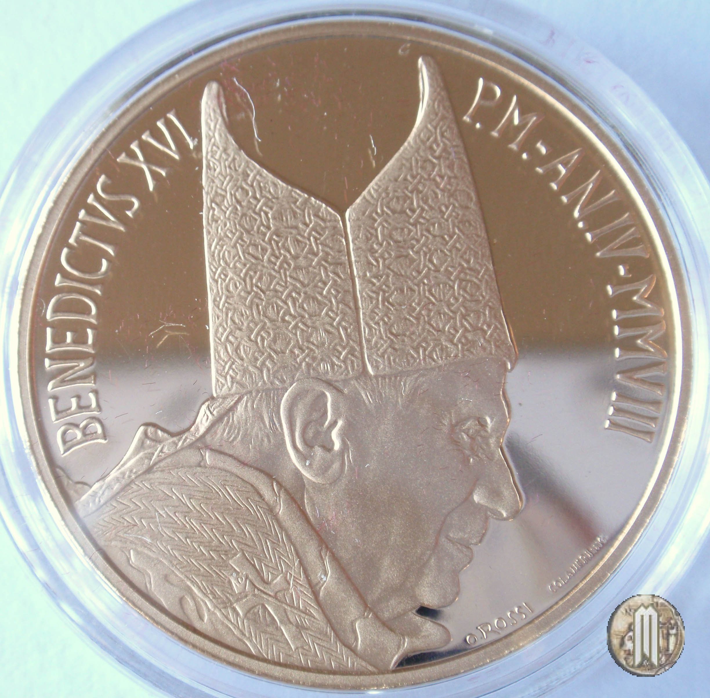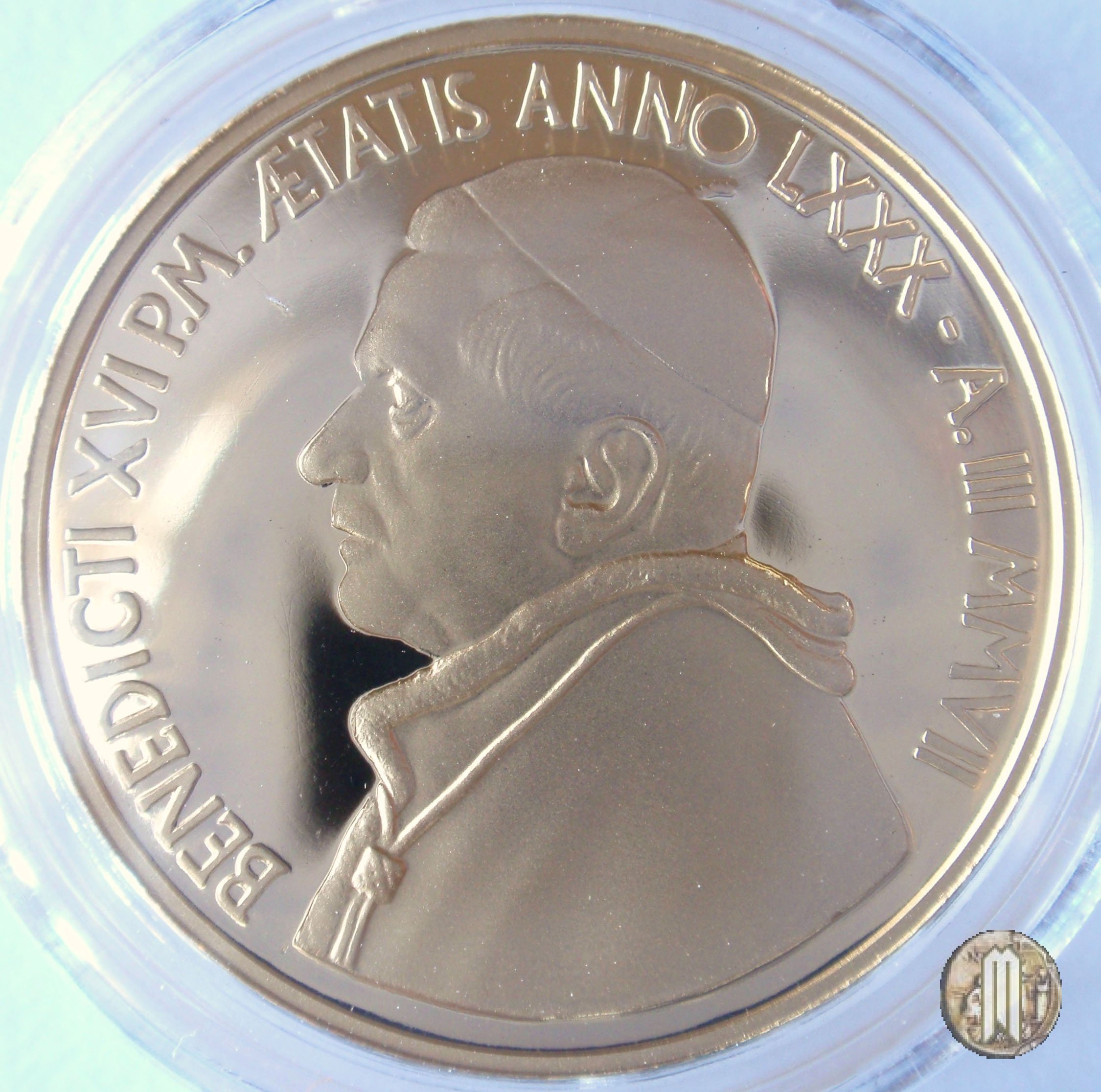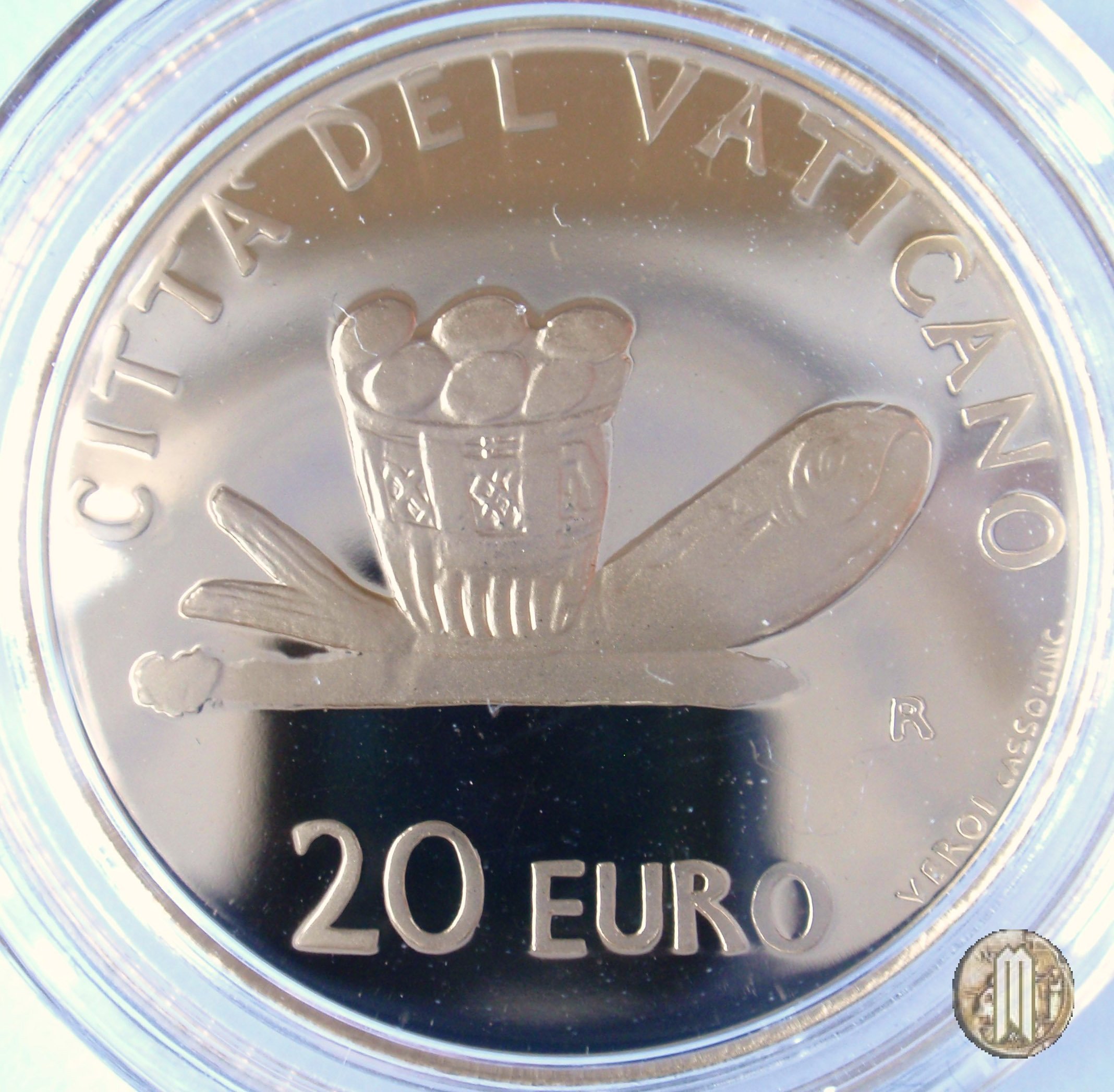 20 Euro 2007 I Sacramenti - Eucarestia Dritto: Immagine di Papa Benedetto XVI +Iscrizioni: BENEDICTUS XVI P.M. AN.III-MMVII Verso: Pesce e Cesto di pani, da un dipinto paleocristiano nelle cripte di Lucina (S.Calisto a Roma) + Iscrizioni: CITTA' DEL VATICANO - 20 EURO | |