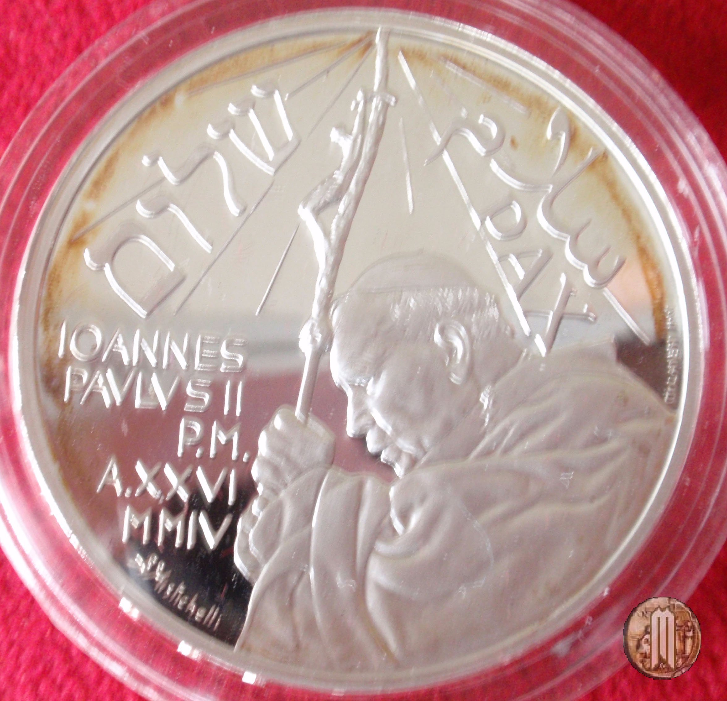 10 Euro 2004 Giornata Mondiale della Pace Dritto: Immagine di Papa Giovanni Paolo II +Iscrizioni: IOANNES PAULUS II P.M. AN.XXVI MMIV Verso: Albero con radici e scritte +Iscrizioni: CITTA' DEL VATICANO - 10 EURO | |