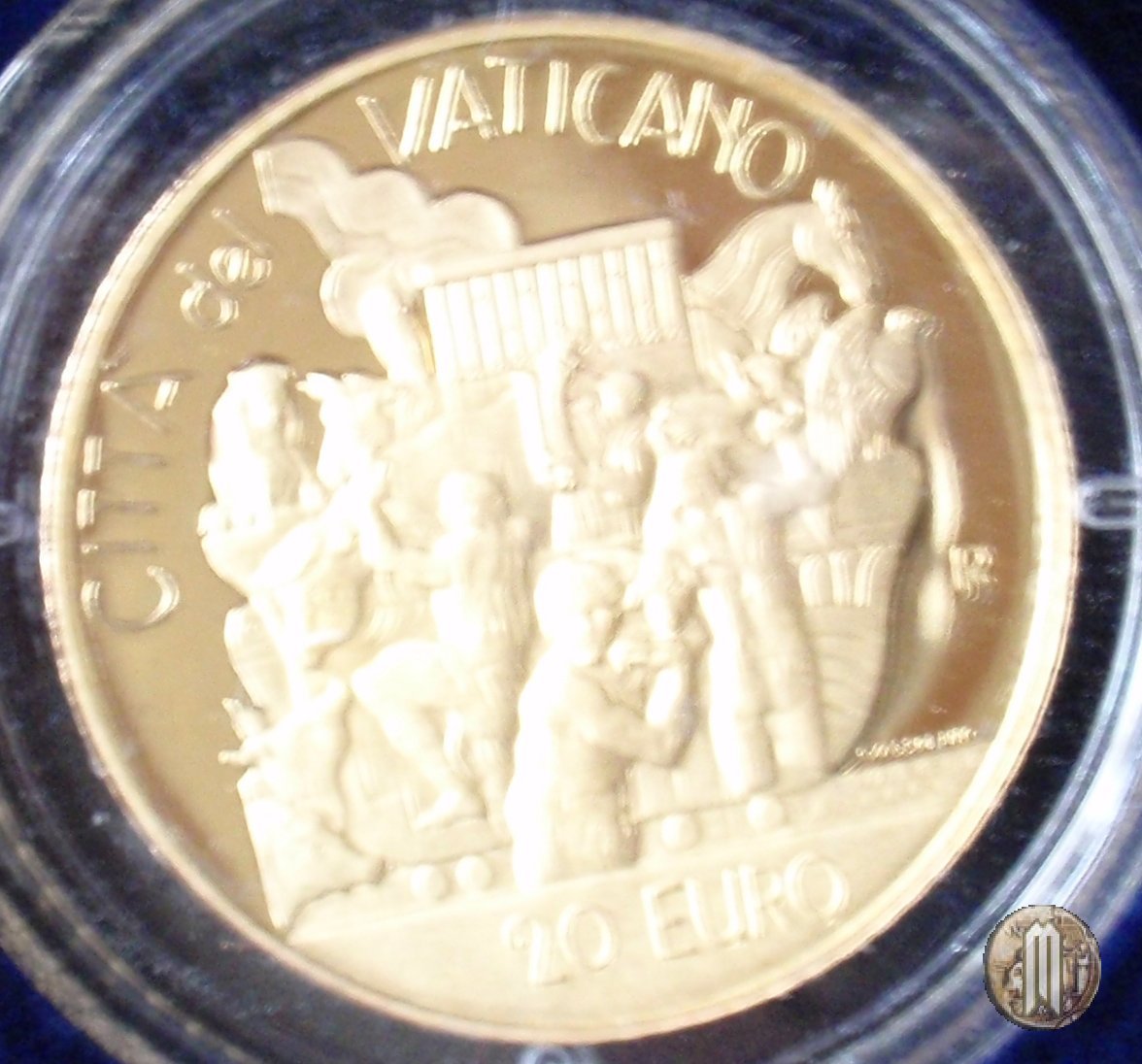 20 Euro 2002 Alle Radici della Fede - L'Arca di Noè Dritto: Immagine di Papa Giovanni II + Iscrizioni: AN.XXIV.MMII-IOANNES PAULUS II P.M. Verso: Arca di Noè +Iscrizioni: CITTA' del VATICANO - 20 EURO | |