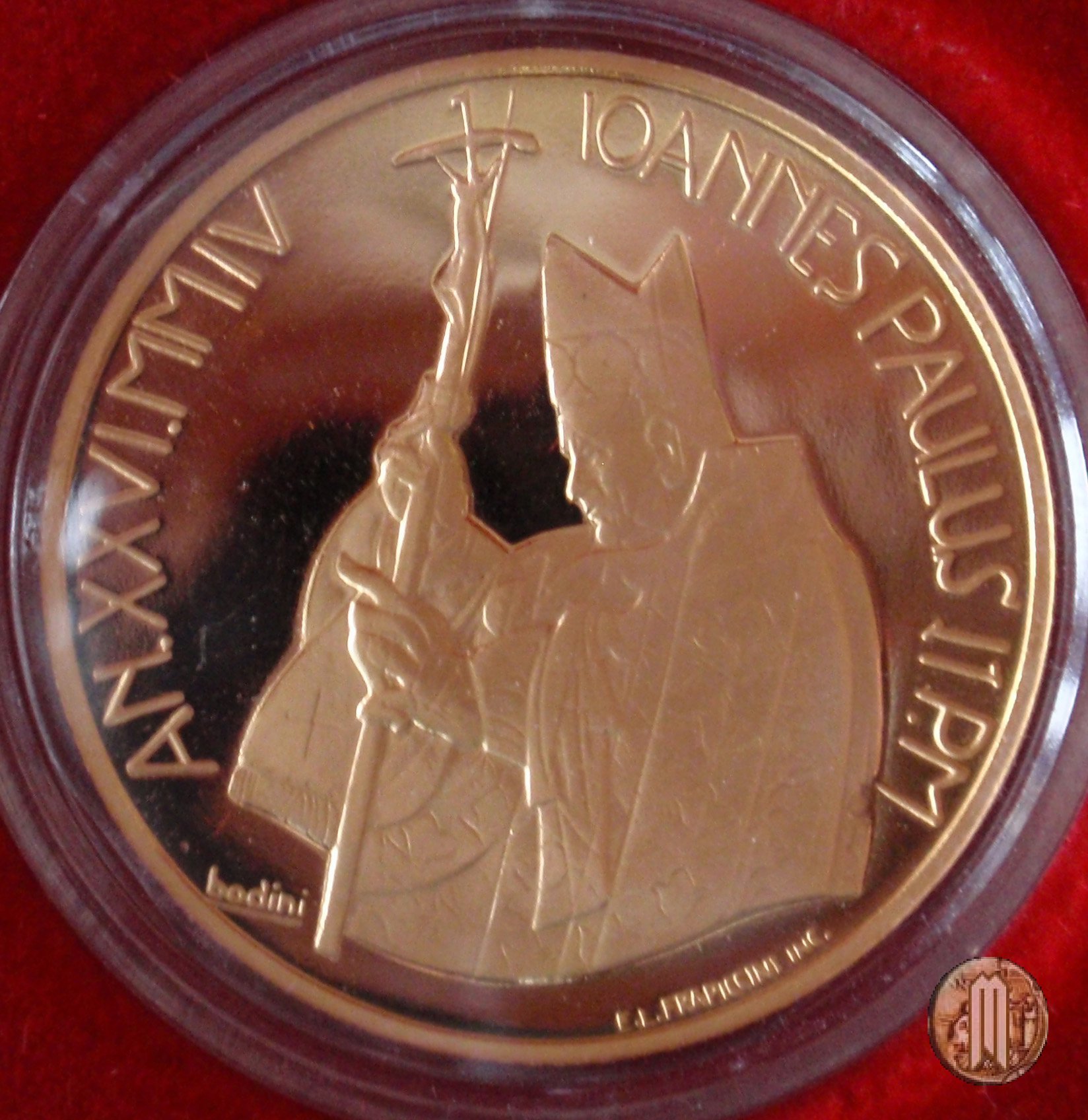 5 Euro 2002 Europa Progetto di Pace e Fratellanza Dritto: Immagine di Papa Giovanni Paolo II +Iscrizioni: IOANES APAULUS II P.M.-AN.XXIV-MMII Verso: Simbologia dell'Europa con arcobaleno e fiume +Iscrizioni: CITTA' DEL VATICANO - 5 Euro | |