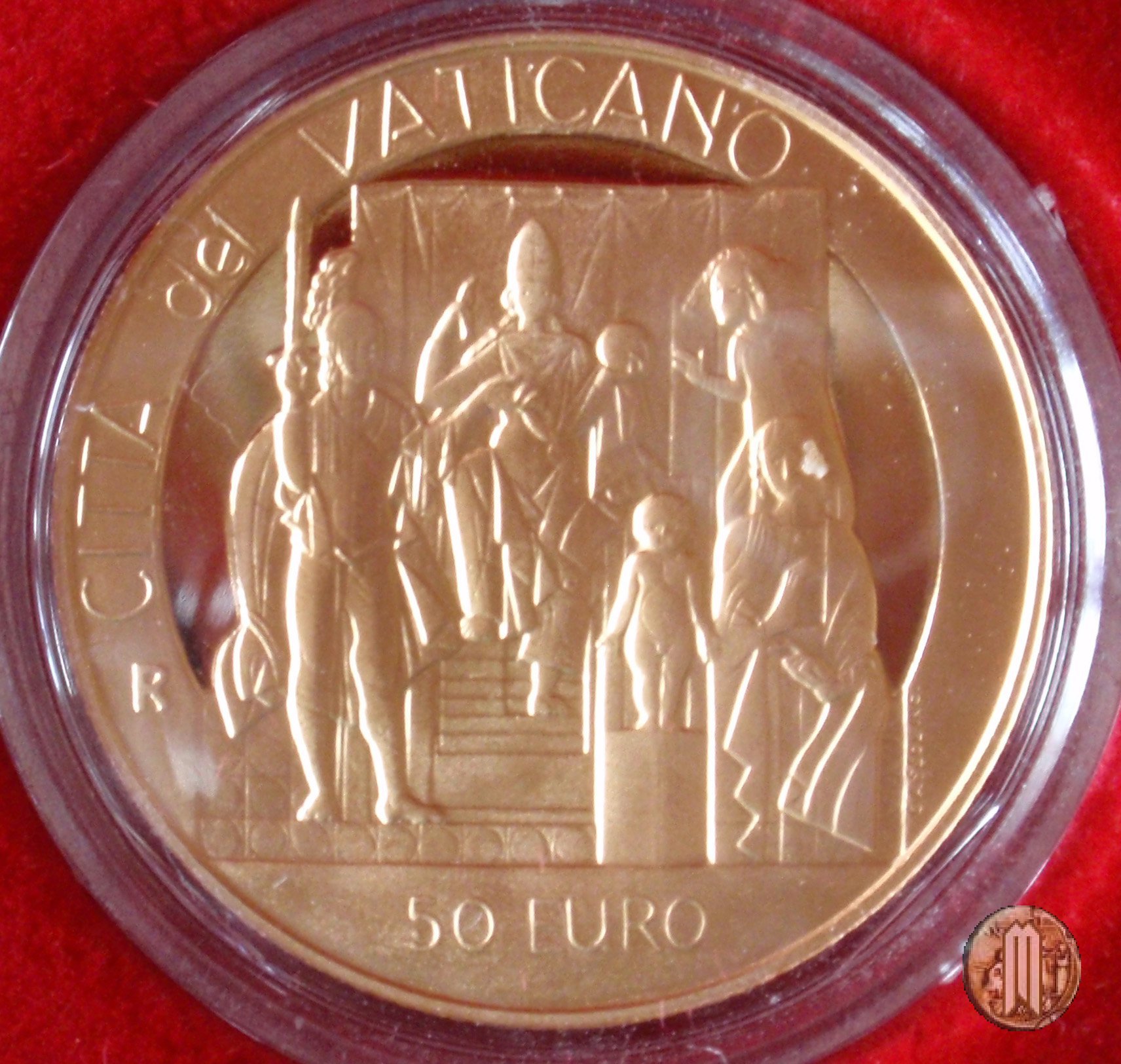 50 Euro 2004 Alle Radici della Fede - Giudizio di Salomone Dritto: Immagine di Papa Giovanni Paolo II +Iscrizioni: AN.XXVI.MMIV IOANNES PAULUS II P.M. Verso: Giudizio si Salomone +Iscrizioni: CITTA' del VATICANO - 50 EURO | |