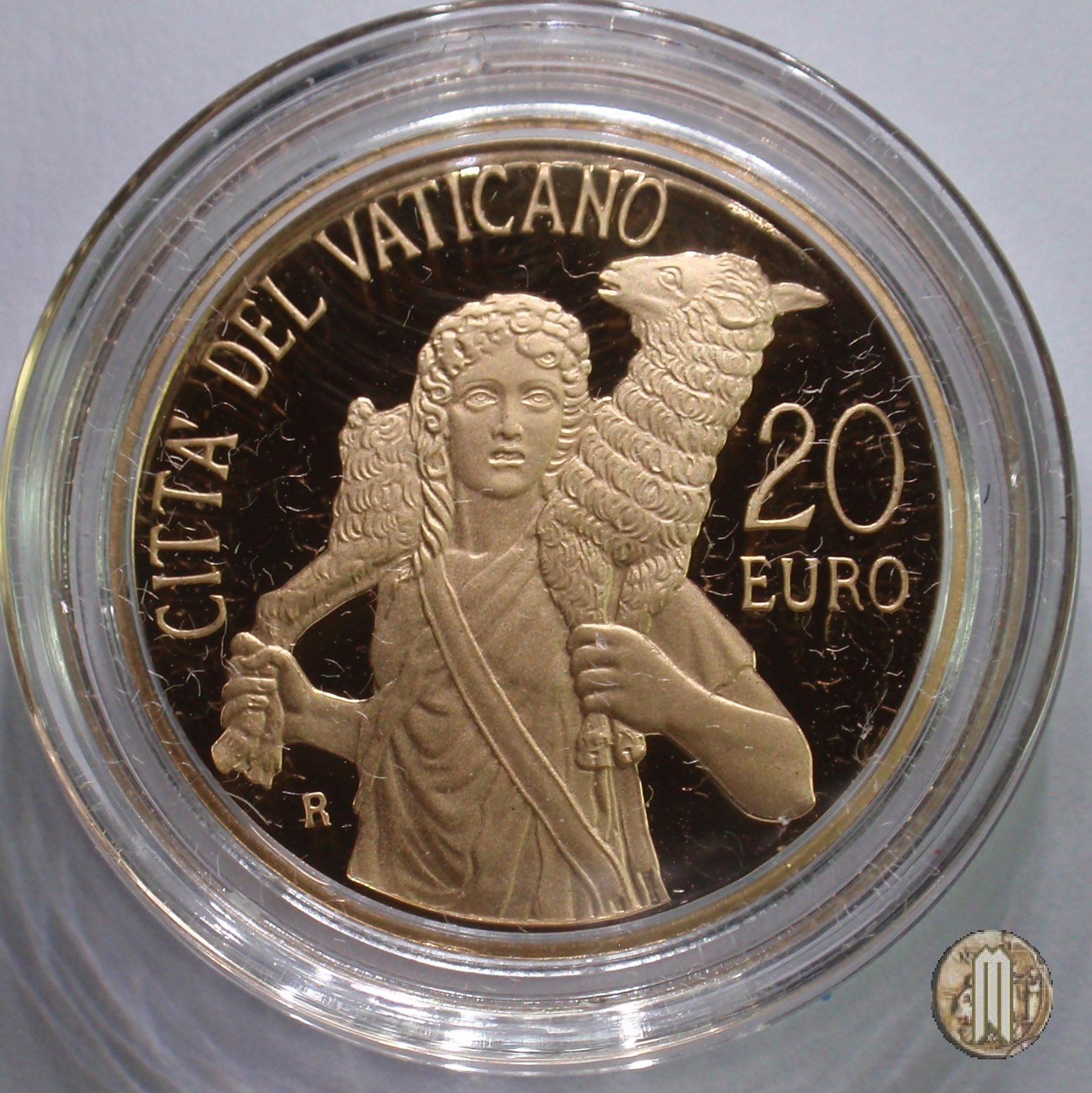 20 Euro 2009 Capolavori Scultura in Vaticano - Il Buon Pastore Dritto: BENEDICTVS XVI P.M.A.V__MMIX Mezzo busto del Santo Padre rivolto a sinistra Verso: CITTA' DEL VATICANO 20 EURO Il Buon Pastore. La statua (del IV secolo) si trova nel museo Pio-Cristiano | |