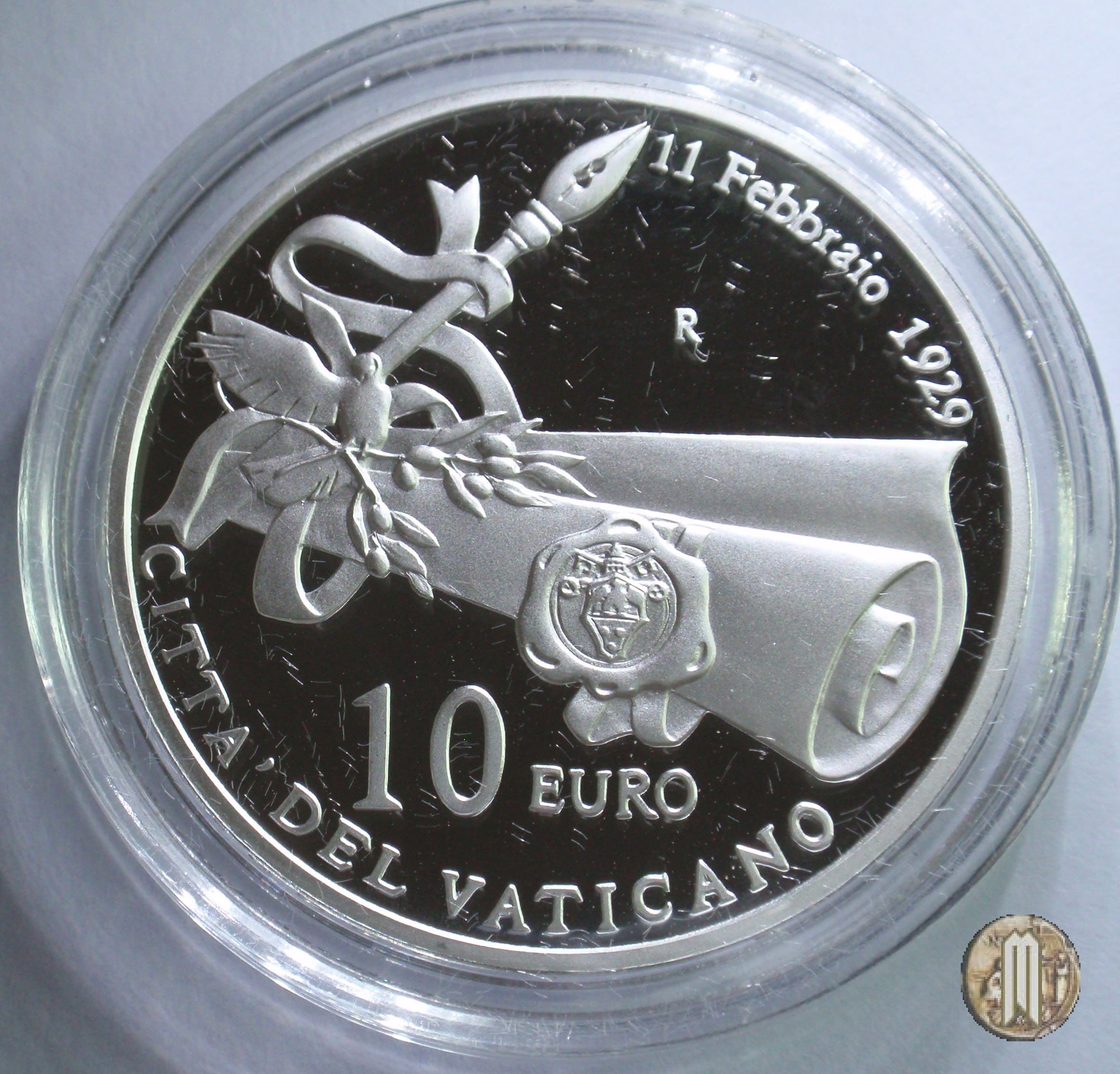 10 Euro 2009 80° Anniv. Fondaz. Stato Città del Vaticano Dritto: BENEDICTVS XVI PONT.MAX. ANNO V - MMIX Volto del Santo Padre rivolto a destra Verso: CITTA' DEL VATICANO 11 Febbraio 1929 10 EURO Nell'80°anniversario della Fondazione della Città del Vaticano | |