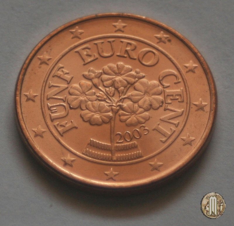 5 centesimi di Euro (2003 - Vienna) 5 centesimi Austria 2003, rovescio | Mon 9/10/06 - 19:58 | ||