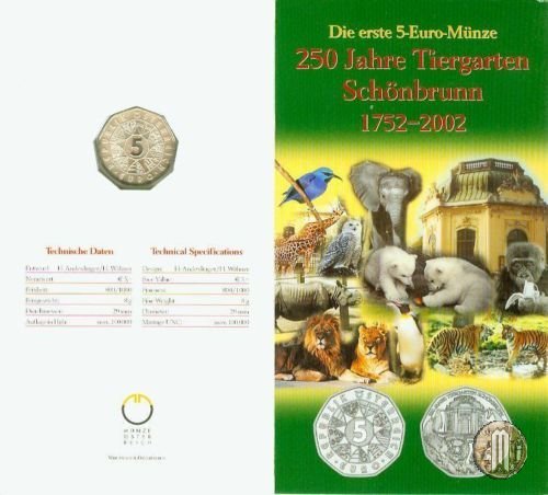 12037 5 Euro 2002 250° Anniversario dello Zoo Schönbrunn di Vienna (2002 - Vienna)