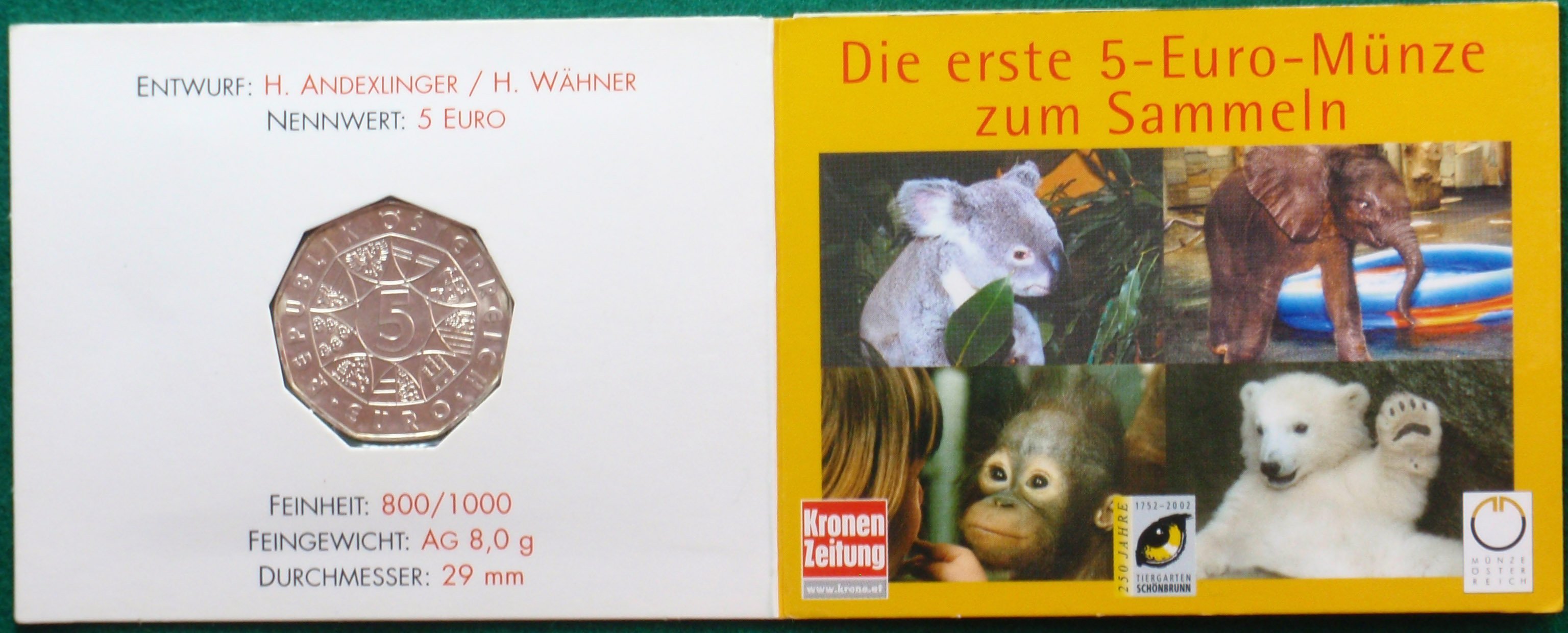7090 5 Euro 2002 250° Anniversario dello Zoo Schönbrunn di Vienna (2002 - Vienna)