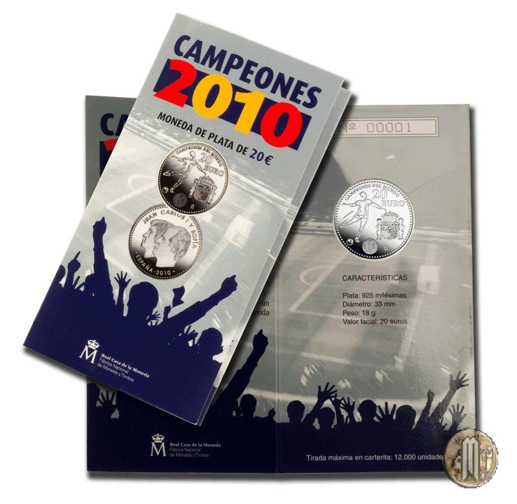 20 Euro 2010 Campioni del Mondo Sudafrica 2010 (2010 - Madrid) 20 Euro 2010 Campioni del Mondo Sudafrica 2010 Dettaglio | Real Casa de la Moneda | Fri 3/12/10 - 22:15 | ||