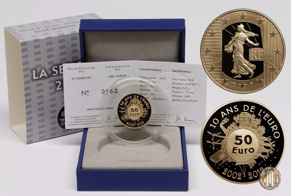 15077 50 Euro 2012 La Semeuse - 10° ans de l'Euro (2012 - Parigi)