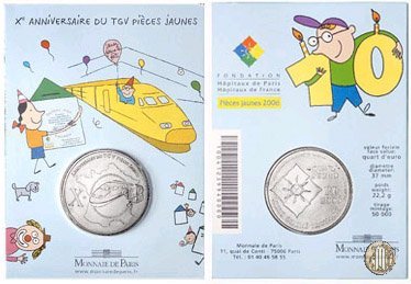 1/4 Euro 2006 10° Anniversario del TGV monete gialle - Fondazione Hôpitaux de France