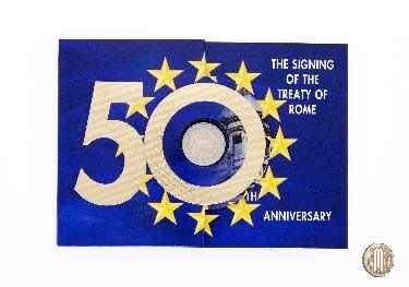 2 Euro 2007 50° Anniversario dei Trattati di Roma (2007 - Dublino) La moneta raffigura, nel suo lato non comune, il testo del trattato firmato dai sei Stati membri fondatori, sormontato dalla parola EUROPA (AN EORAIP); sullo sfondo appare la pavimentazione, disegnata da Michelangelo, di Piazza del Campidoglio a Roma, luogo in cui sono stati firmati i Trattati il 25 marzo 1957. In basso al centro il millesimo (2007); in alto, in una composizione ad arco su due righe, "CONRADH NA RÓIMHE 50 BLIAIN", mentre in basso "Ã�°IRE". Nel contorno appaiono le dodici stelle simbolo dell'Unione europea. | Thu 20/09/07 - 18:52 | |||